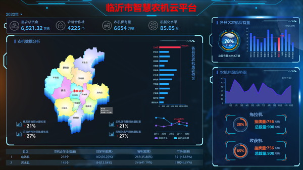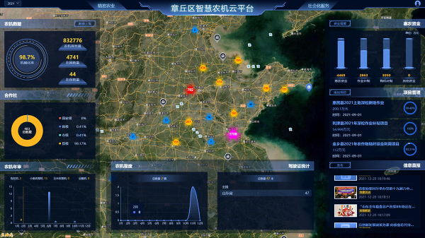 平臺功能涉及農(nóng)機參與作業(yè)的全方面,可以實時展示農(nóng)機定位位置、運行軌跡、作業(yè)圖像等信息,并通過高清監(jiān)控系統(tǒng)查看農(nóng)機的實時狀態(tài);平臺所建立的農(nóng)機數(shù)據(jù)中心能夠隨時查看農(nóng)機相關信息;發(fā)布農(nóng)機找活、作業(yè)找車等協(xié)調(diào)區(qū)域資源;配合“三合一”農(nóng)機二維碼輔助管理系統(tǒng),為辦理農(nóng)機補貼提供依據(jù)等。通過智慧農(nóng)機云平臺,達到對所轄區(qū)域內(nèi)農(nóng)機整體情況的綜合管理、規(guī)范農(nóng)機安全運行、促進平安農(nóng)機建設等目標。