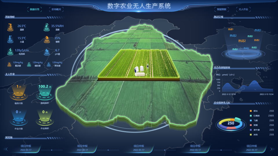 智慧農業建設是農業生產的高級階段,是集成新一代信息技術為一體,依托部署在農業生產現場的各種傳感器節點和智能農機裝備實現農業生產環境的智能感知、智能預警、智能決策、智能分析、專家在線指導,為農業生產提供精準化種植、可視化管理、智能化決策。
